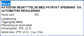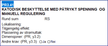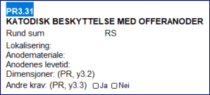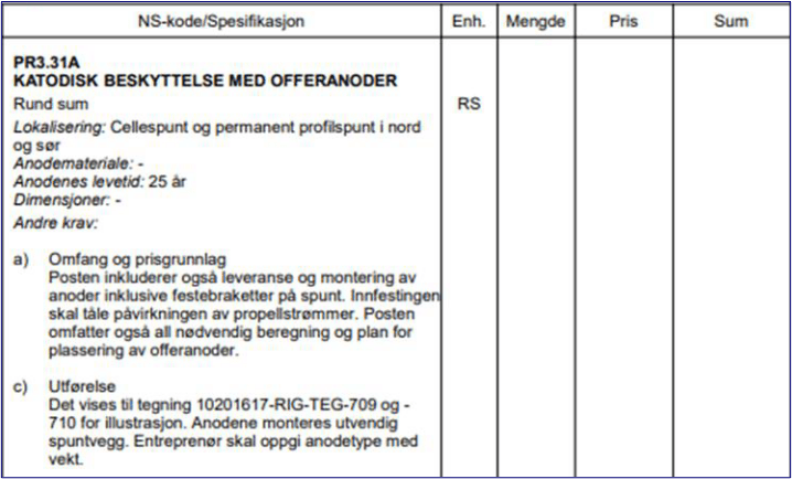 Oppdragsgiver ba om pris på postgrunnlaget med kode PR3.31, Katodisk beskyttelse med offeranoder: