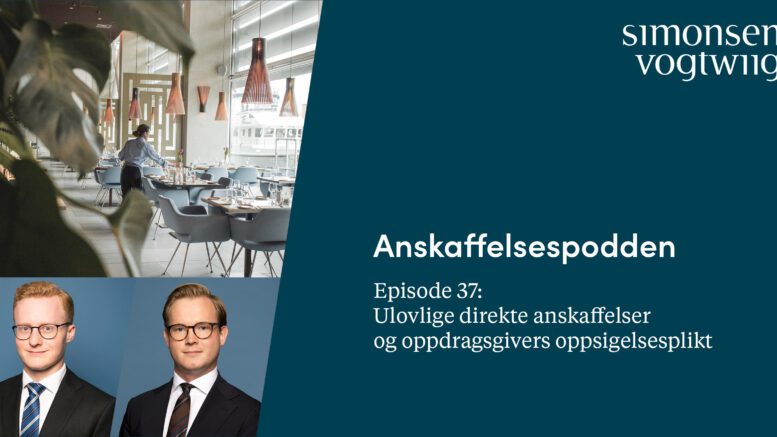 Ulovlige direkte anskaffelser, med hovedvekt på spørsmålet om oppdragsgiver har en oppsigelsesplikt, er tema for denne utgaven av Anskaffelsespodden. I episoden ser senioradvokat Olav Haukeli og advokatfullmektig Erling Grøndahl – begge Simonsen Vogt Wiig – nærmere på utviklingen på dette området.